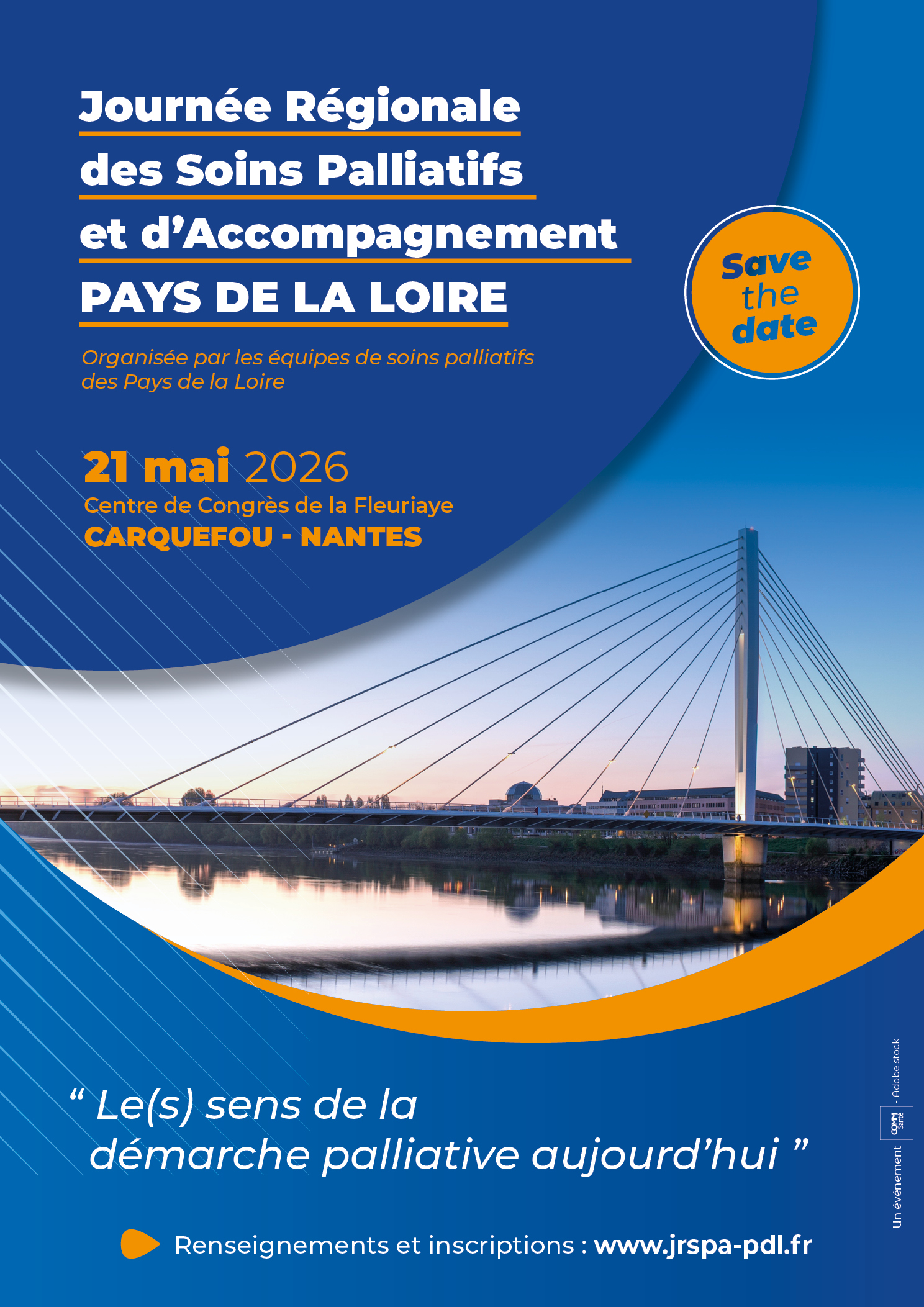 La Journée Régionale des Soins Palliatifs et d’Accompagnement – Pays de la Loire aura lieu cette année le jeudi 21 mai 2026 au Centre des Congrès de La Fleuriaye et portera sur le thème « Le(s) sens de la démarche palliative aujourd’hui ».